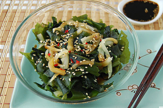 Finos cortes de palmito, acompañado de masago, wakame y salsa de la casa.