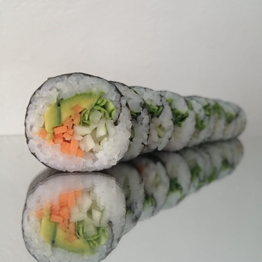 Aguacate, zanahoria, pepino y lechuga topping de ajonjolí .