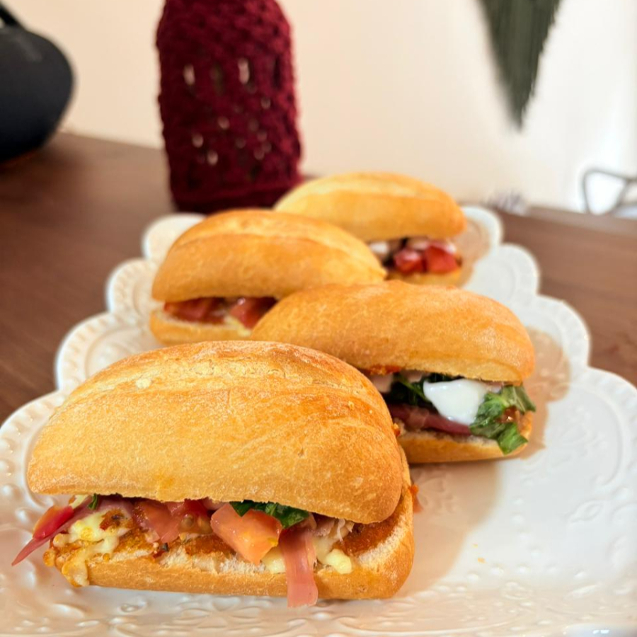 Deliciosos sandwiches estilo italianos elaborados con pan Baguette fresco, salsa pomodoro artesanal, jamón serrano, mozzarella de búfala, tomates cherry y albahaca. Ideal para compartir.