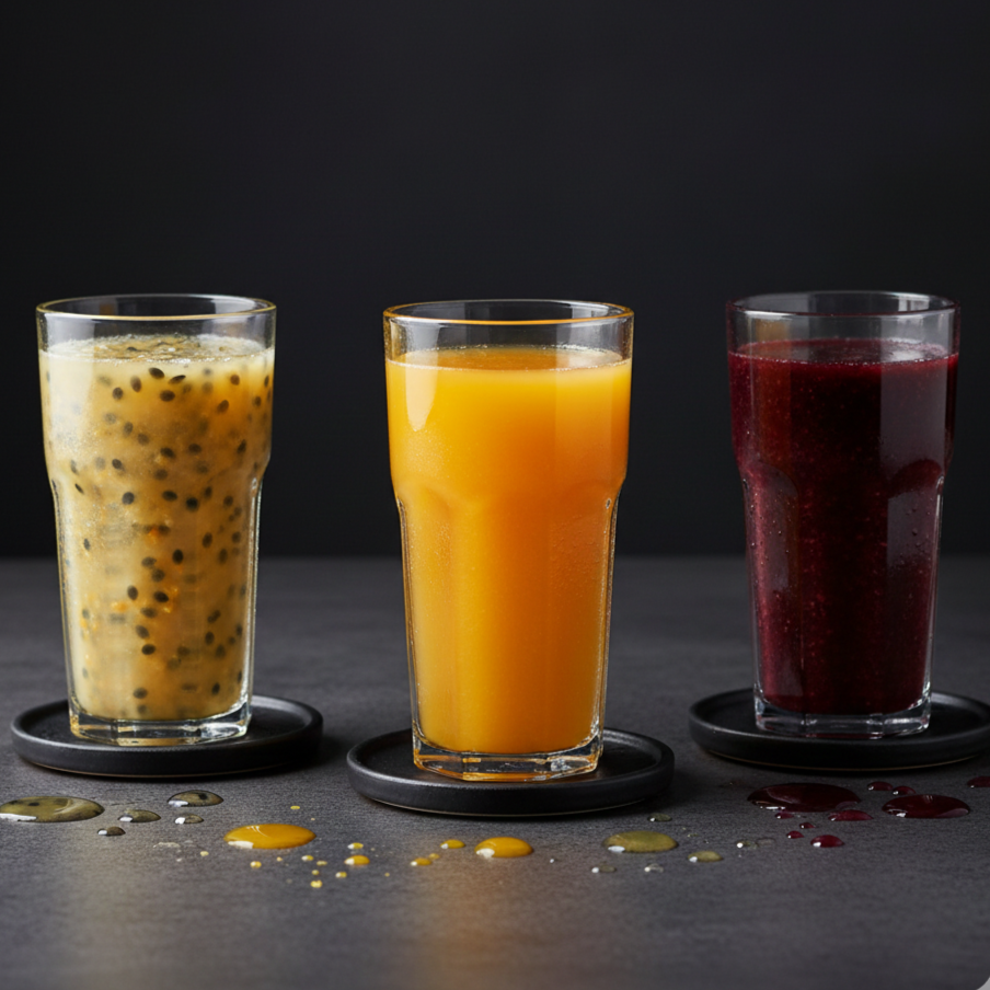 Maracuyá, fresa, lychee, frutos rojos/amarillos, tamarindo o mango biche.