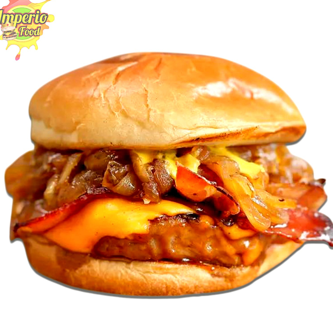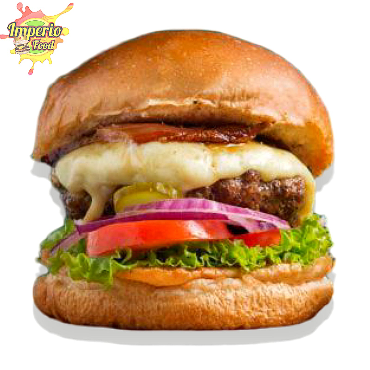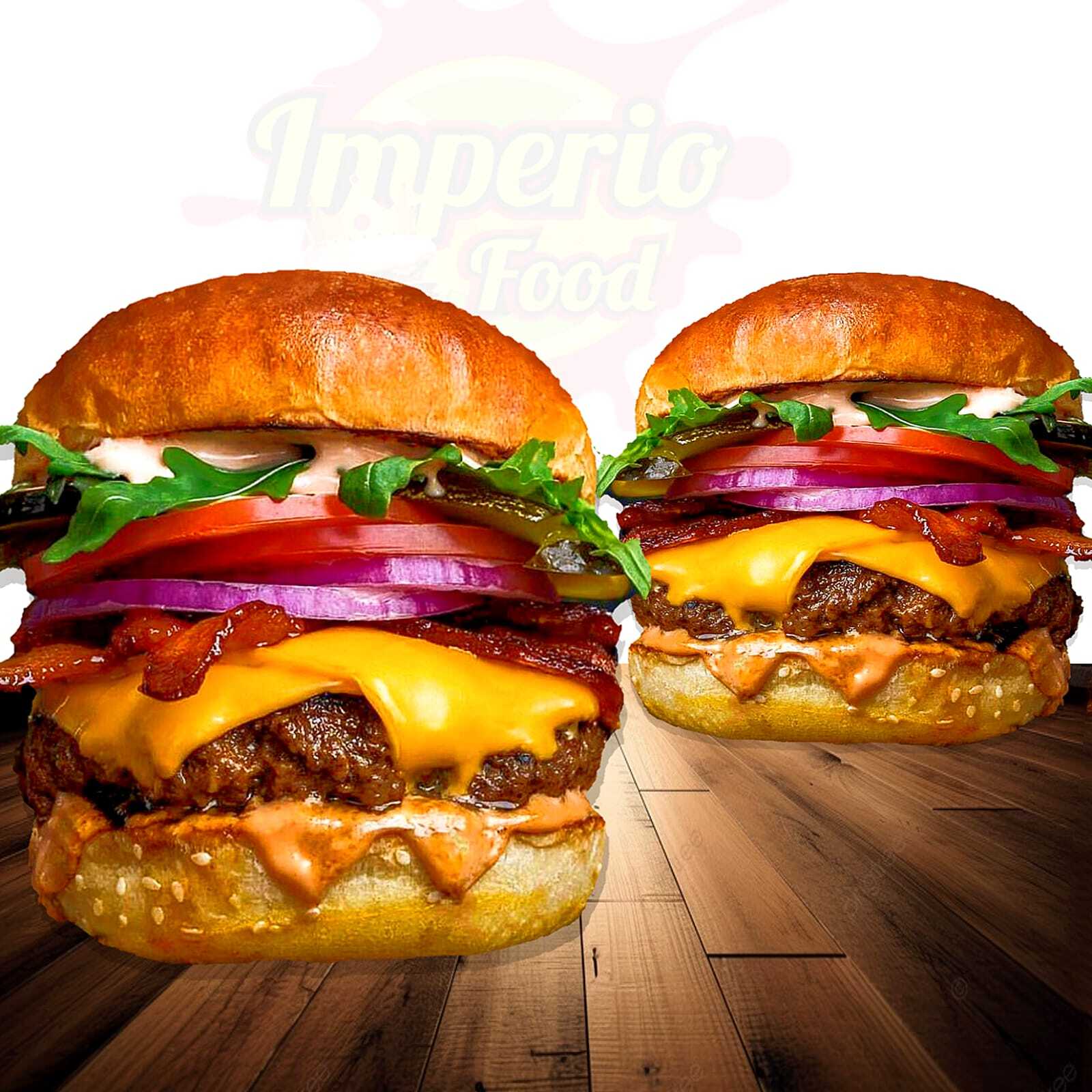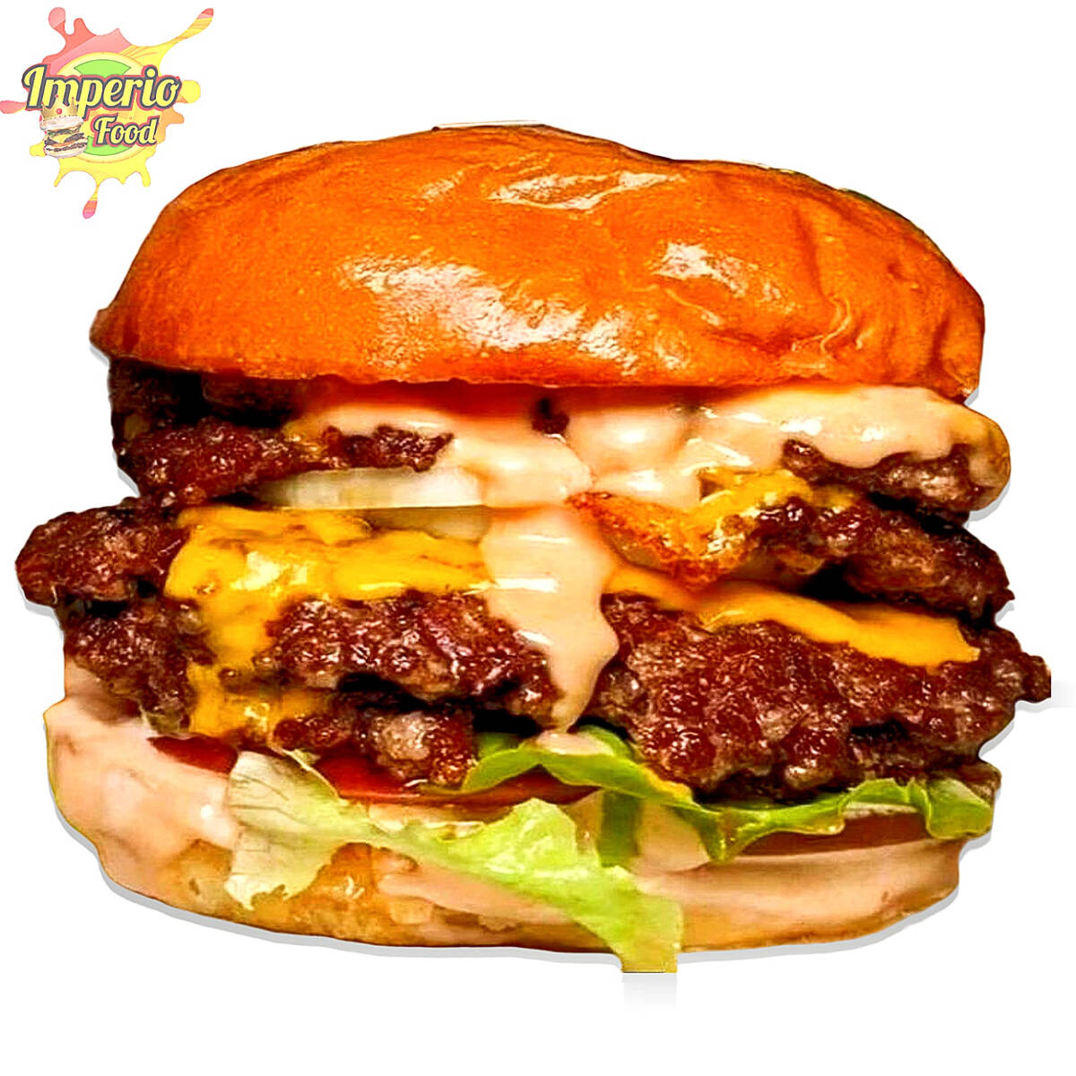 Pan Artesanal, Doble Carne de res, Queso Amarillo Cheddar, Queso Mozzarella, Tocineta, Lechuga Crespa, Tomate, Cebolla Morada, Salsa Chowy, Raosada y BBQ