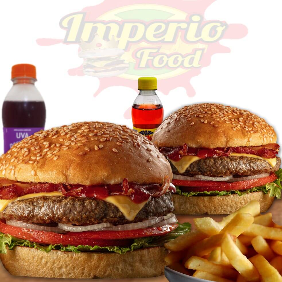 Dos Hamburguesa Tocineta de Res + Dos Porciones de Papas Francesas + Dos Gaseosas