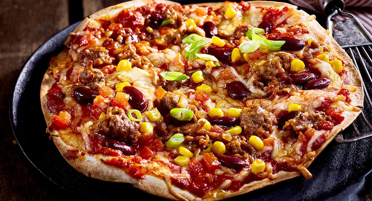 4 Porciones, personal, salsa de fríjol, queso mozzarella, espinaca, aguacate, tocineta, pico de gallo, jalapeño opcional.