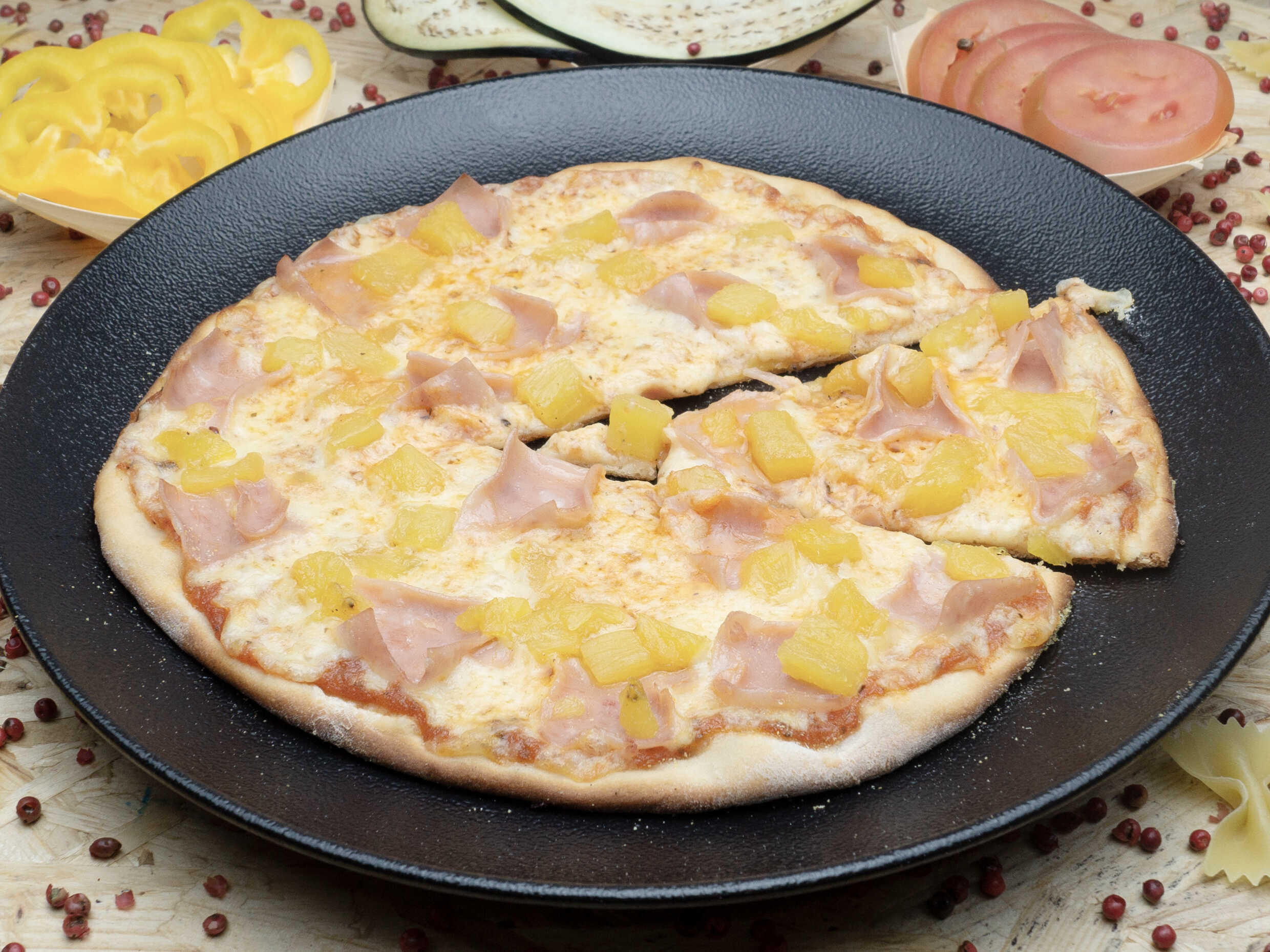 4 Porciones, personal, napolitana, queso mozzarella, ciruela, tocineta.