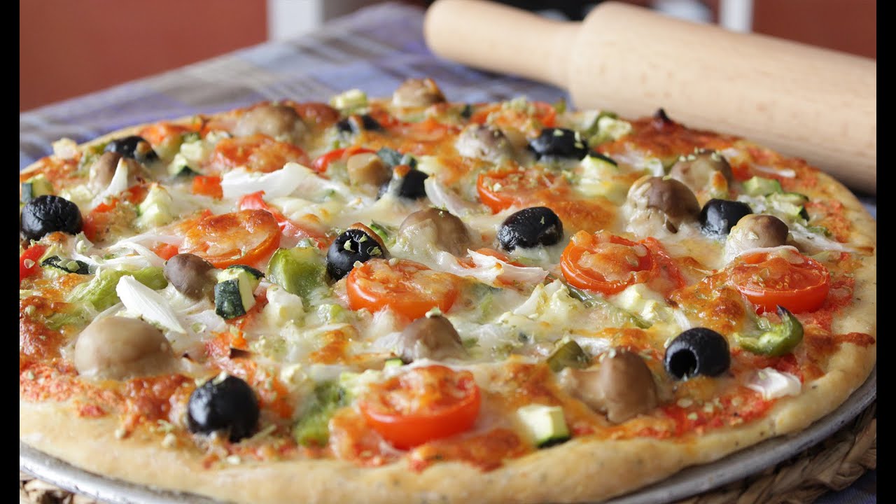 Personal, napolitana, queso mozzarella, cebolla, pimentón, zuquini amarillo, zuquini verde, perejil, champiñón, aceituna.