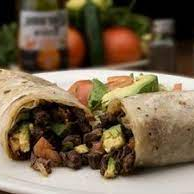 Tortilla, lechuga, res, pico de gallo, pimentón, cebolla, guacamole, queso mozzarella, queso cheddar, acompañado con papas chips o papa casco al horno.