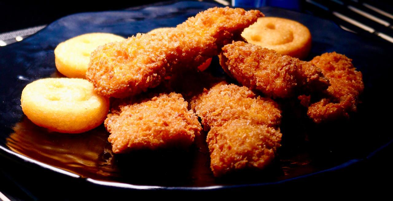 4 tenders de pollo Apanado(strips) + papas a la francesa