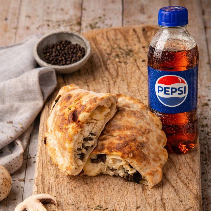 Calzone con pollo, champiñones y queso mozzarella + Gaseosa 250 ml