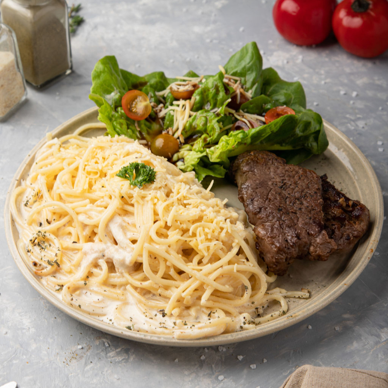 Solomito de Res, pasta a elección y ensalada de la casa.