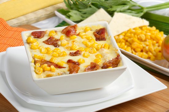 Maicitos gratinados con pollo desmechado, tocineta, champiñón mucho queso, perfecto para 1 persona queso.