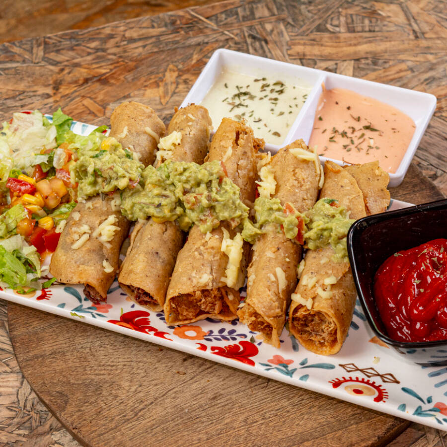 chimichanga carne pollo desmechado refrito nachos ensalada