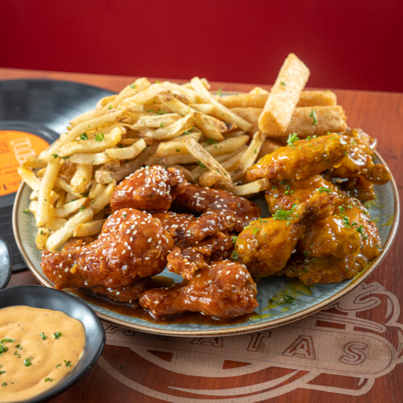 8 Alitas más papas a la francesa y 4 yuquitas.