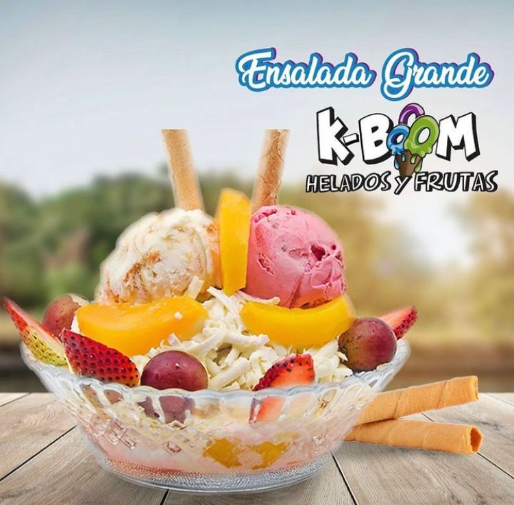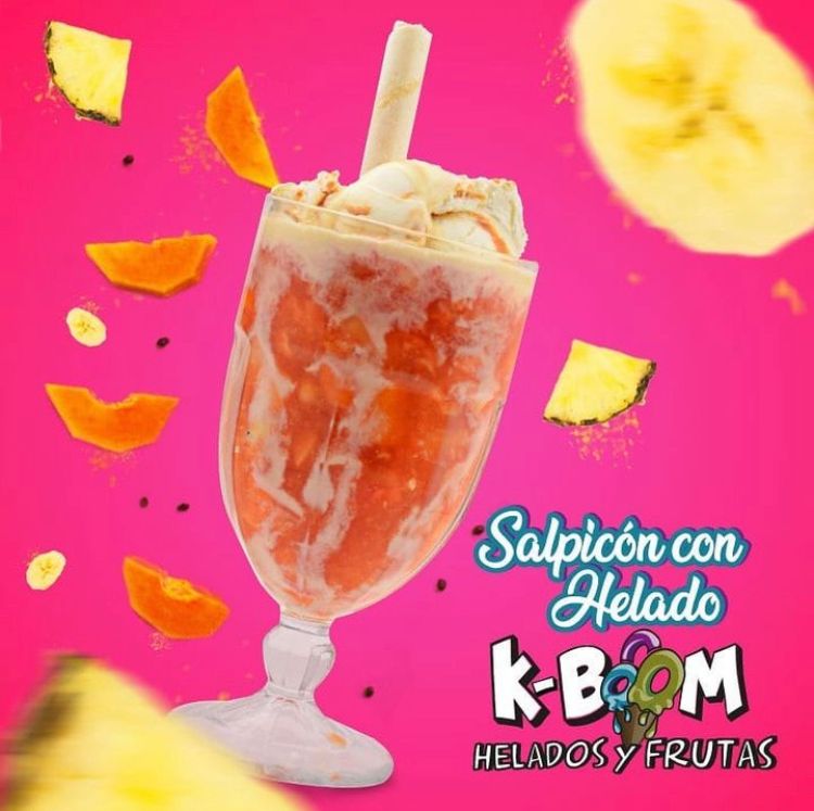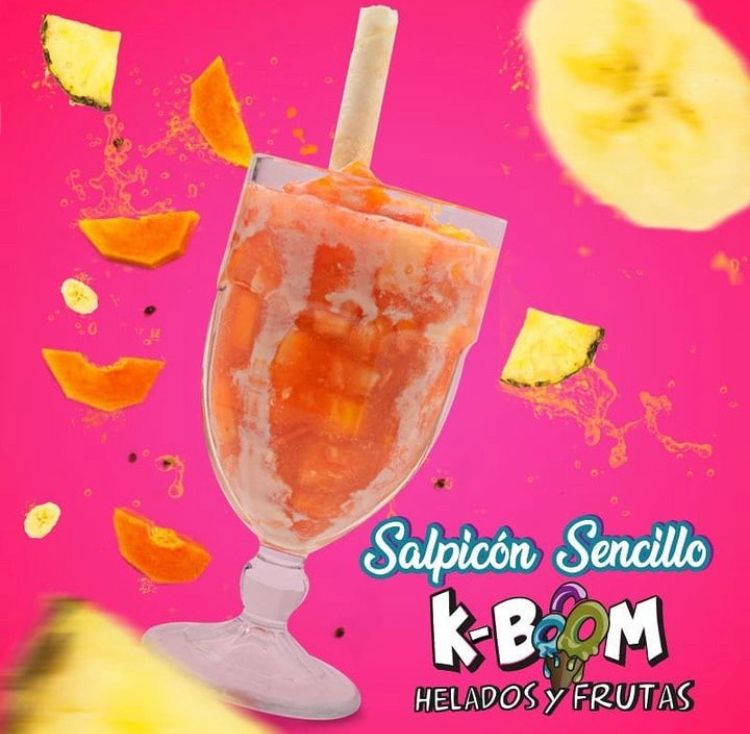 Delicioso e inigualable salpicón k boom, acompañado de leche condensada, crema de leche y un sabor de helado, contenido 14 oz.