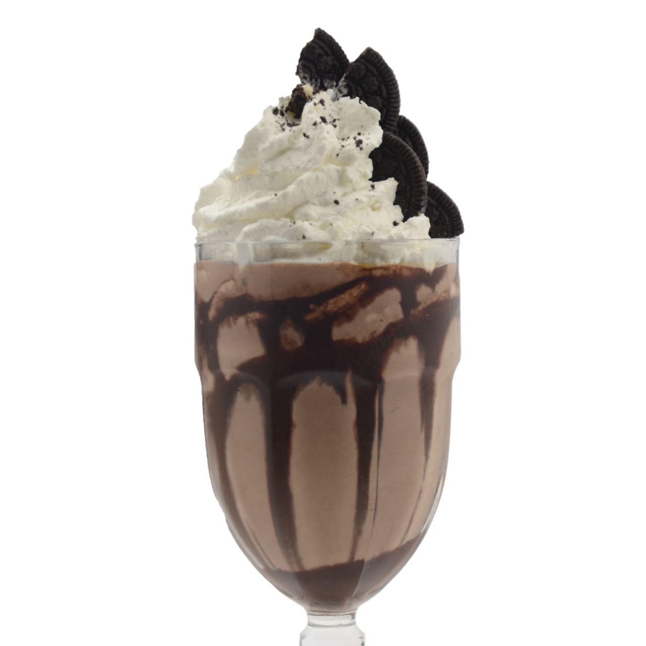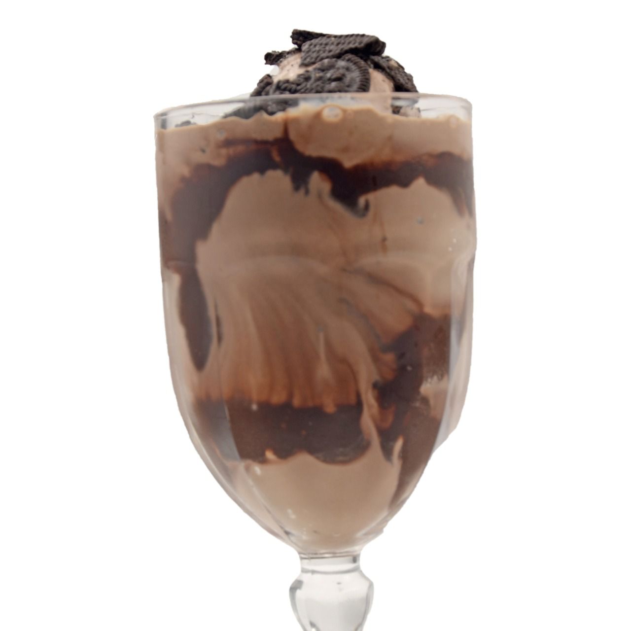 Cremoso helado batido con café tradicional, acompañado de deliciosa salsa de chocolate k boom, crema chantillí y trozos de galleta Oreo, contenido 24 oz.
