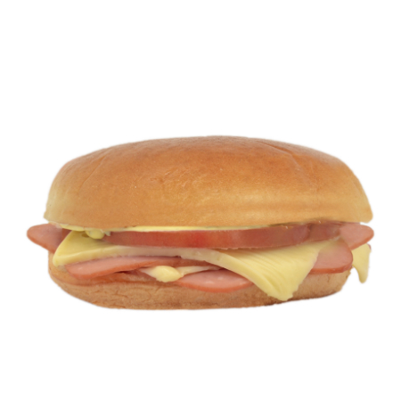 Tradicional Sanduche de jamón y queso, acompañado de rodajas de tomate