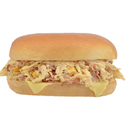 Delicioso Sanduche de pollo desmechado, tocineta, maicitos y queso