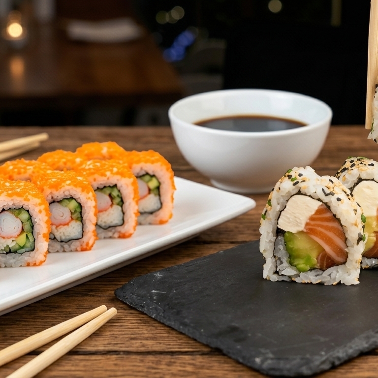 CALIFORNIA 1/2 ROLL 5 BOCADOS*1 + SALMON TEMPURA ROLL 5 BOCADOS*1 + PHILADELPHIA 1/2 ROLLO 5 BOCADOS*1 + MADURITO ROLL 5 BOCADOS*1 + KAITO KANIKAMA (6 UNIDADES)*1