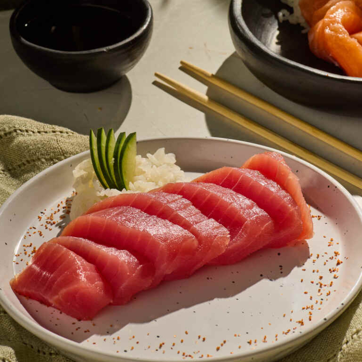 Delicioso Poke con base de arroz de sushi, aguacate, atun fresco y alga nori