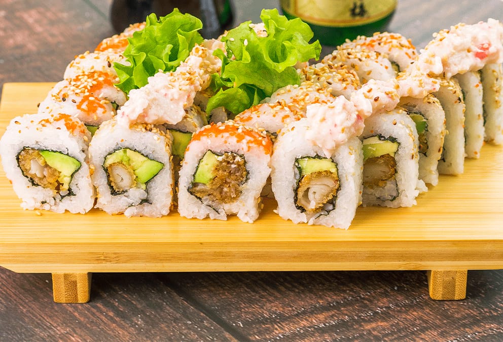 Apanado roll, tentación roll, california roll, buenos aires philadelphia roll.