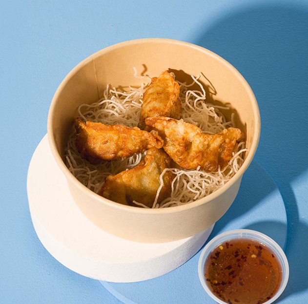 Empanadas japonesas (gyozas) con salsa sweet chilli.