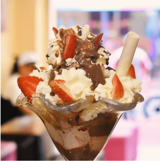 Helado y salsa a elección 300 gr, leche en polvo 30 gr y chantilly 80 gr.