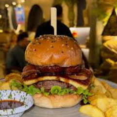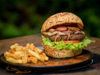 200 g De carne, queso, tocineta, maduro calao, queso crema, maíz, mantequilla aderezada, salsas de la casa.