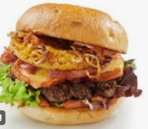200 g De carne, piña asada, queso, tocineta, lechuga, mantequilla aderezada, queso crema, salsas de la casa.