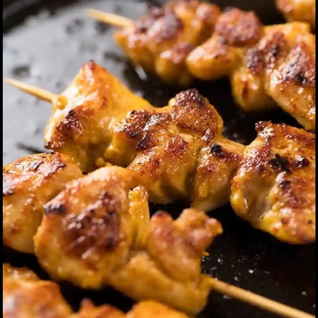 Pinchos de pollo, acompañados de papas casco y salsa de la casa.