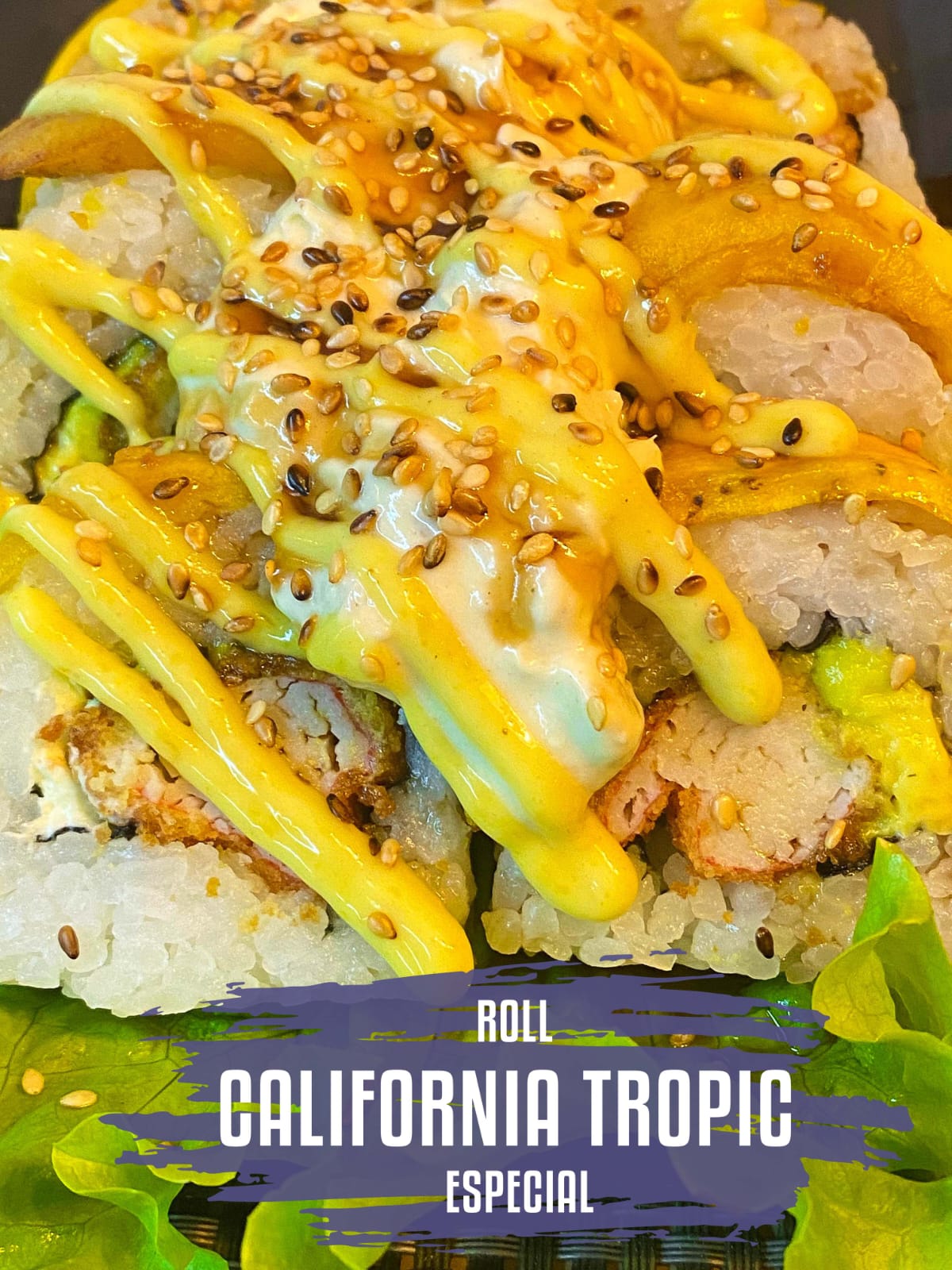 20 bocados especiales: 10 bocados de california tropic special y 10 bocados de kanikama special