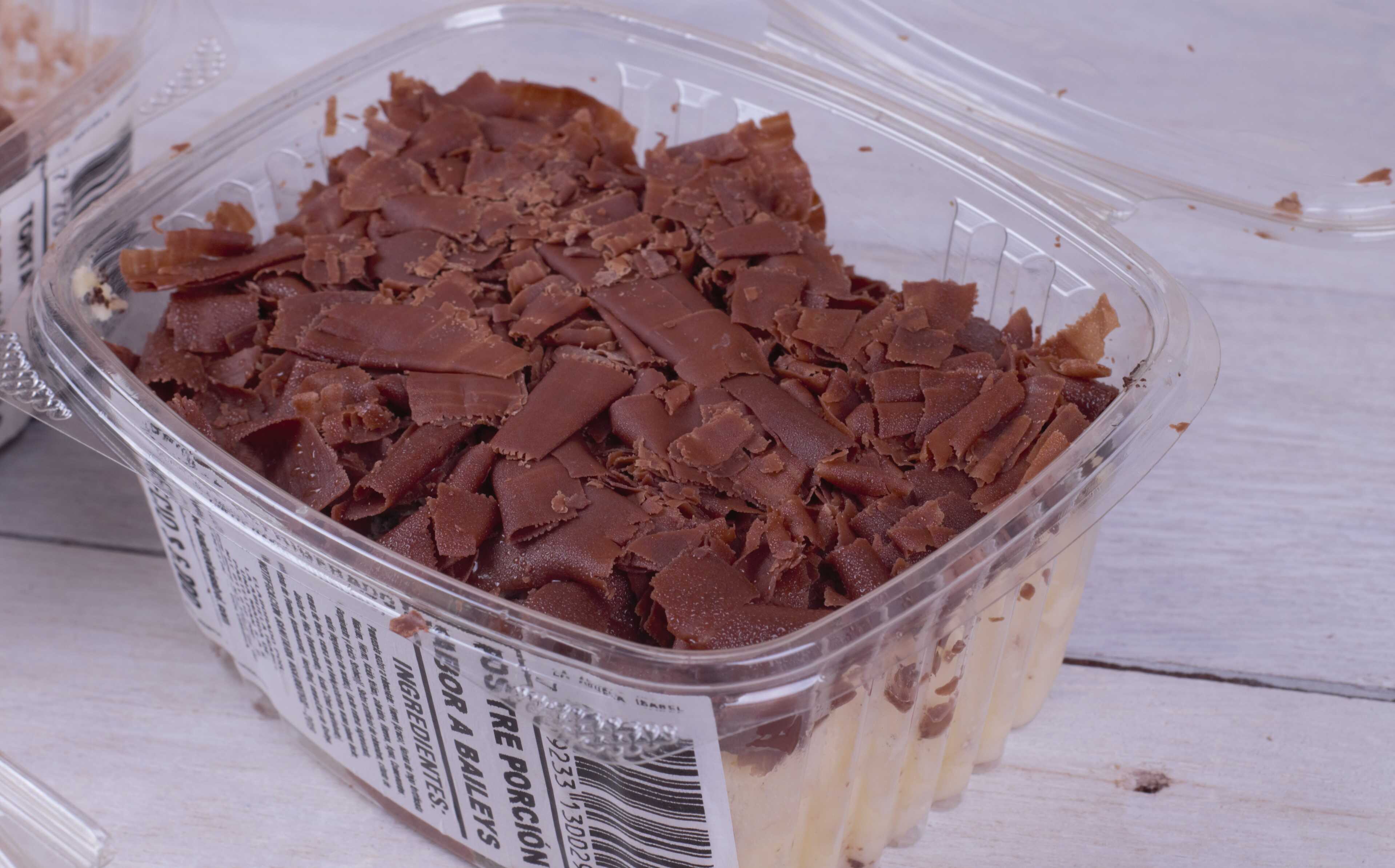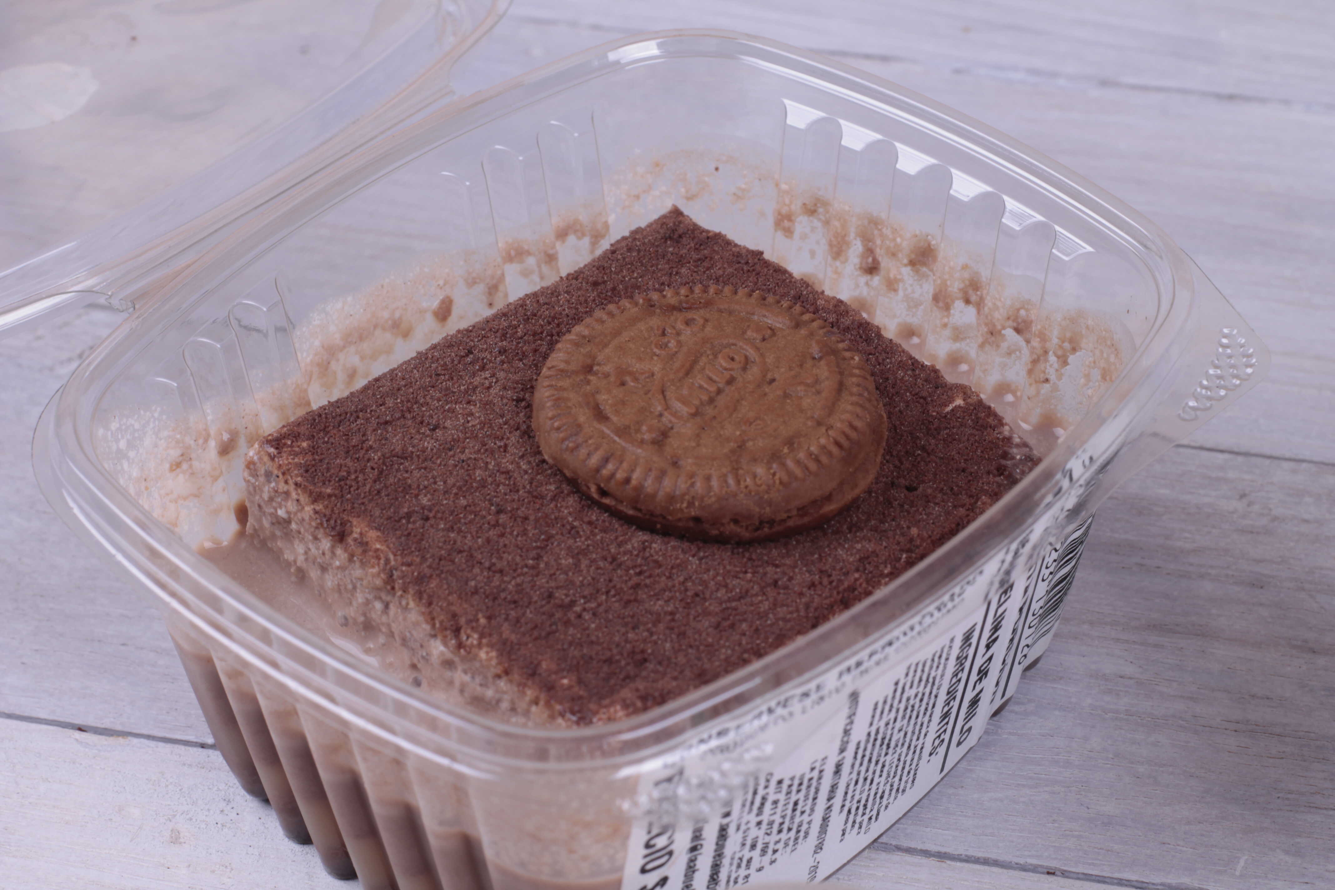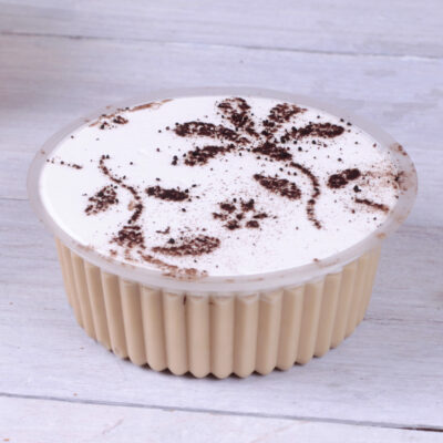 Suave postre a base de crema de leche, con sabor a café y torta remojada en licor de café decorado con crema batida y cacao.