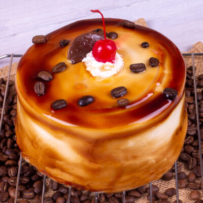 Deliciosa torta hidratada en tres leches con un toque especial de café, rellena de suave crema batida disuelta en ron.