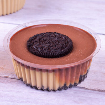Exquisito y especial postre a base de leche, queso crema, lechera, ron, café y un toque de galleta de Oreo triturada.
