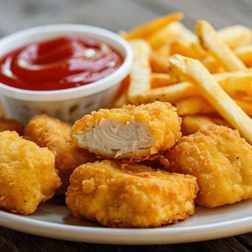 Nuggets de Pollo, acompañado de papas a la francesa y gaseosa mini