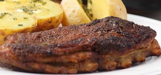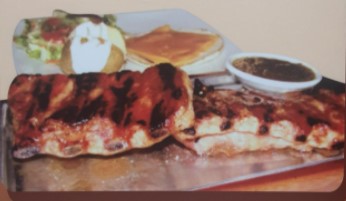 200 Gramos de costilla, salsa BBQ, papa cocida y ensalada.