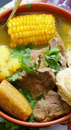 Delicioso sancocho con cerdo, res, pollo y hueso de cola de res.