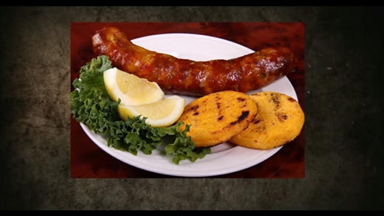 Delicioso chorizo del campo 100% artesanal hecho con cañón de cerdo, acompañado de una arepa más queso mozzarella derretido.