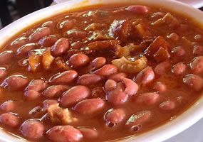 Deliciosa cazuela de frijoles antioqueña, trozos de cerdo, chicharroncitos, maduritos. ripio de papa, chorizos, arepa, aguacate y bebida.