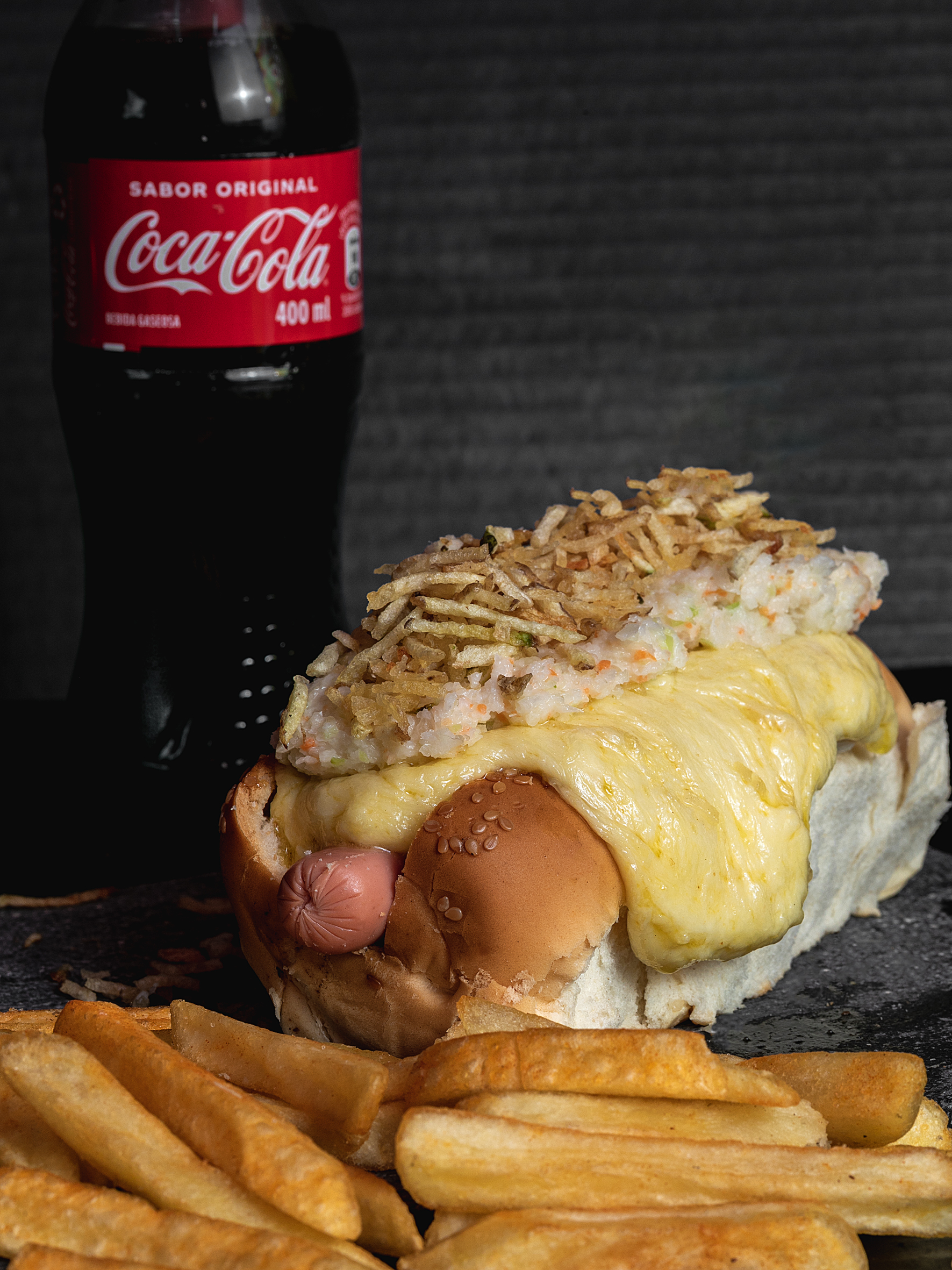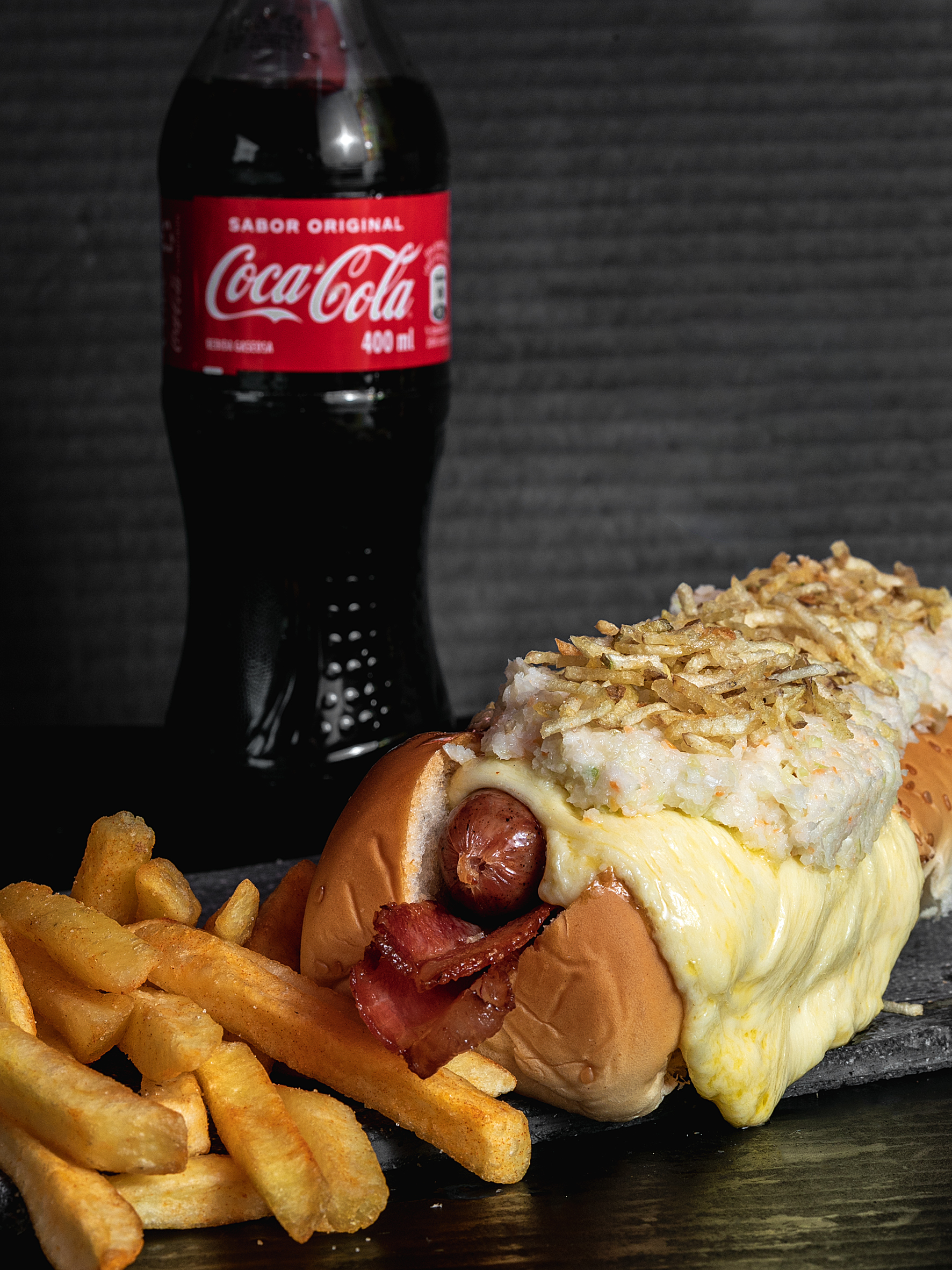 Pan pequeño, tocineta, queso, salchicha Zenú, ensalada de la casa, ripio de papa y salsas al gusto.