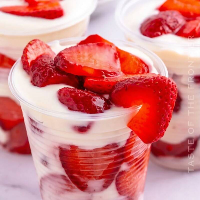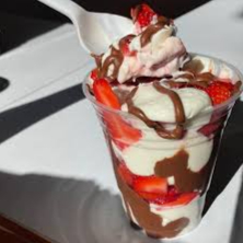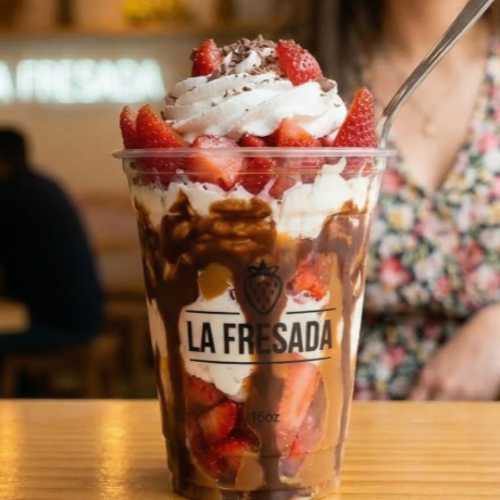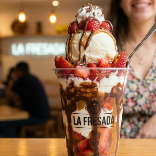 CREMAS DE LA CASA, FRESAS, SALSA Y UN SABOR DE HELADO