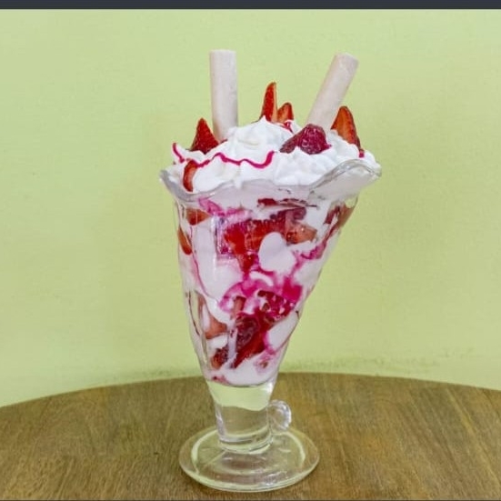 150 Gr de fresas crema de la casa helado chantilly y barquillo