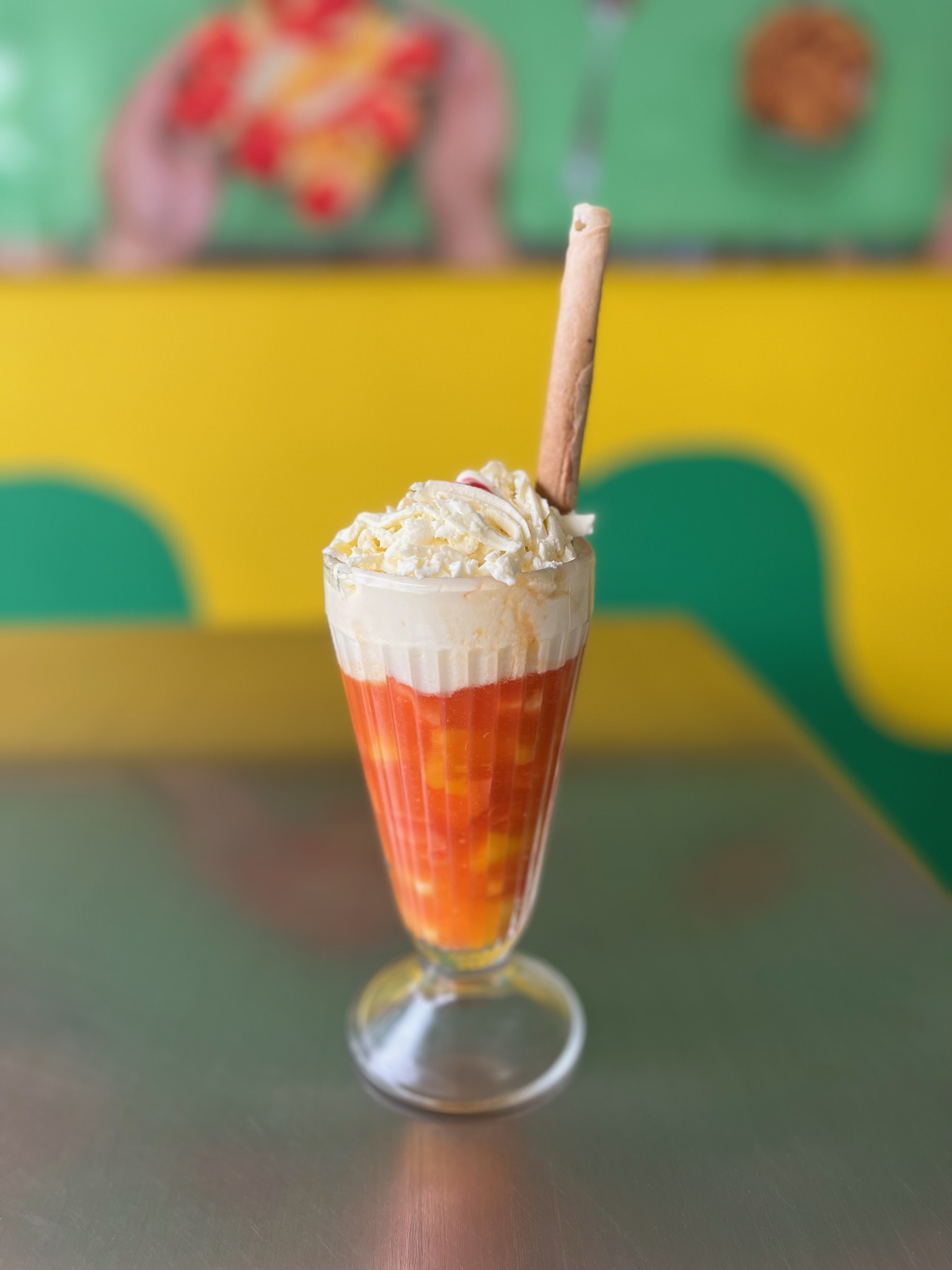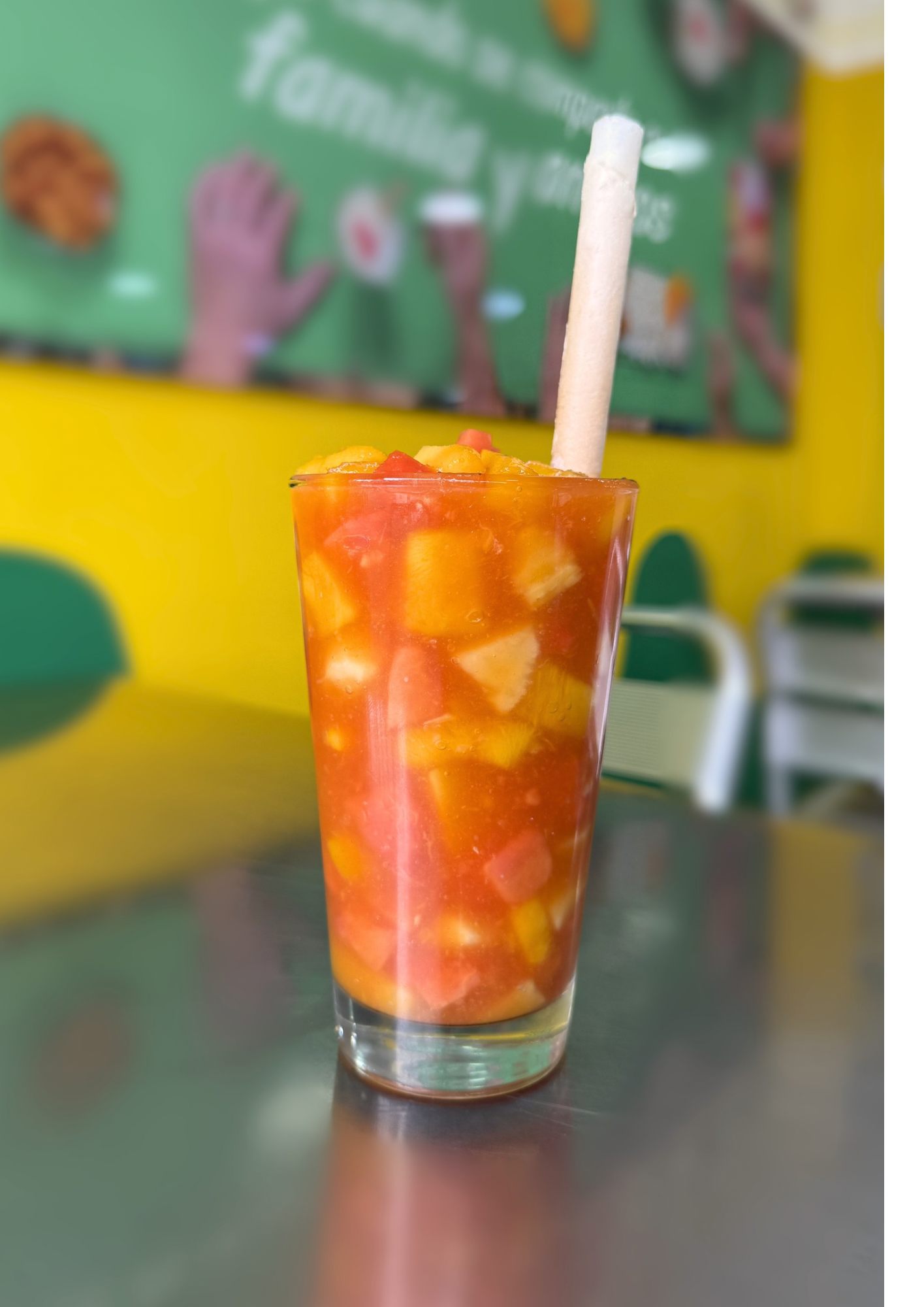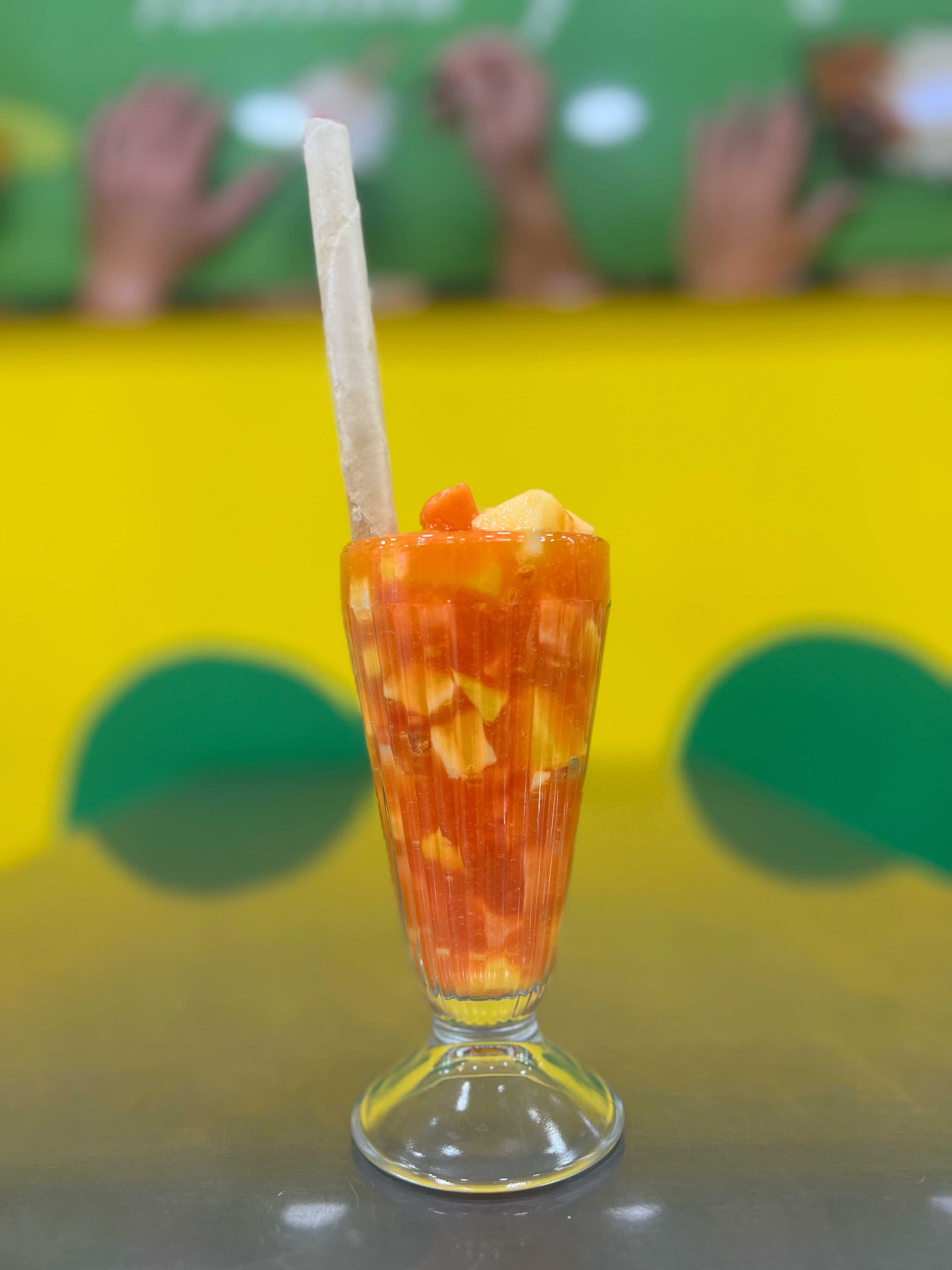 Salpicón a base de frutas naturales, acompañado de barquillo.