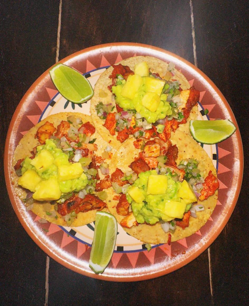 Tortillas suaves rellenas de jugosa carne al pastor, cebolla, cilantro y el toque mágico: piña caramelizada. Todo esto con unos gajitos de limón porque, obvio, así saben mejor.