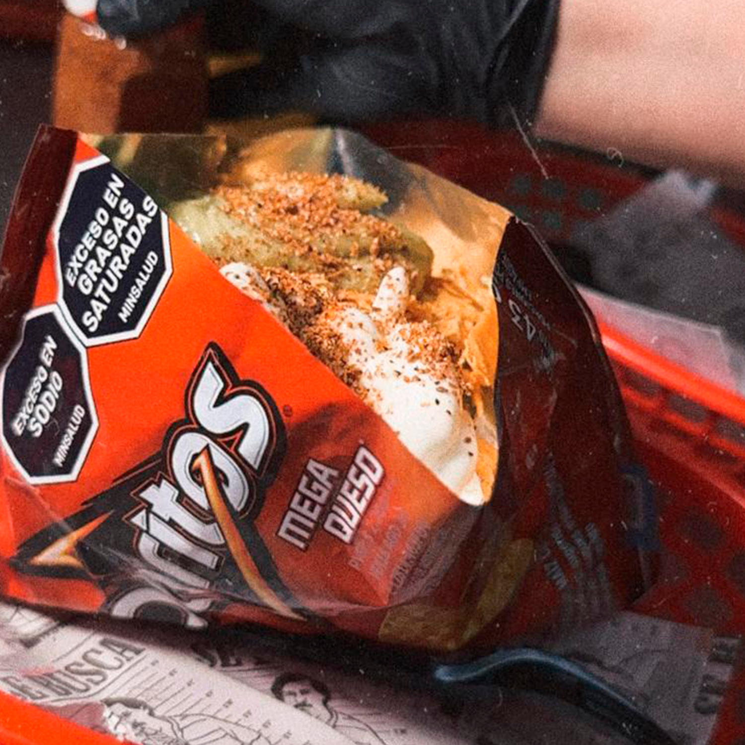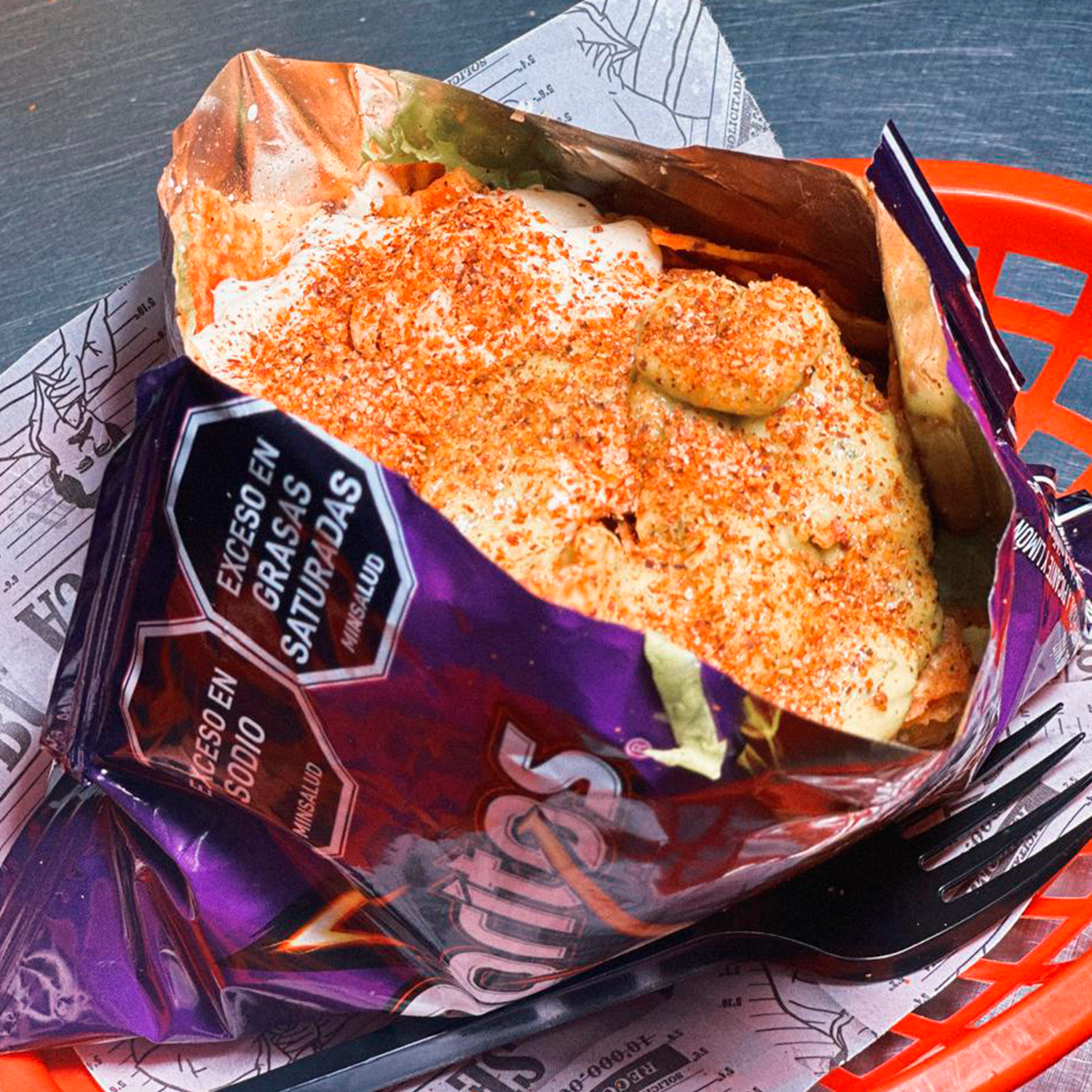 Combinación explosiva de sabres y texturas que te encantará, lechuga fresca, chicharrón crunch, pollo jugoso, maicitos dulces, maduro suave, queso rallado, doritos crujientes, sour cream suave y guacamole lleno de sabor.
