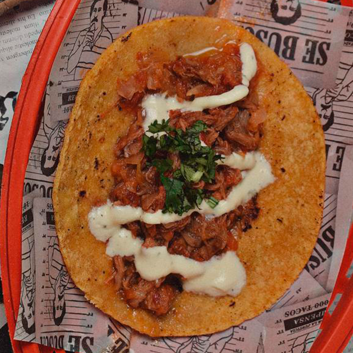 Carne jugosa y tierna, acompañada de una mezcla única de hogao y sour cream que se combinan perfectamente para crear un sabor irresistible, tortilla de maíz color amarillo.
