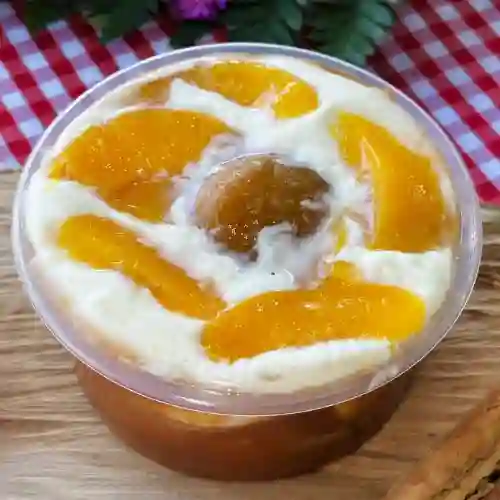 Una combinación entre duraznos frescos, nuestro tradicional dulce de durazno y crema artesanal de la casa.