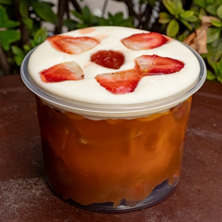 16 onzas de las mas deliciosas fresas frescas con arequipe y crema artesanal hechos en casa