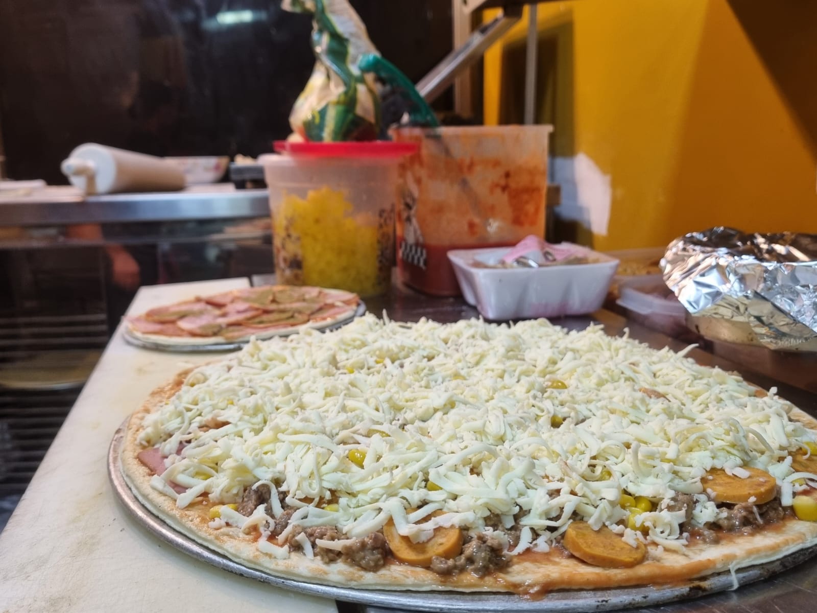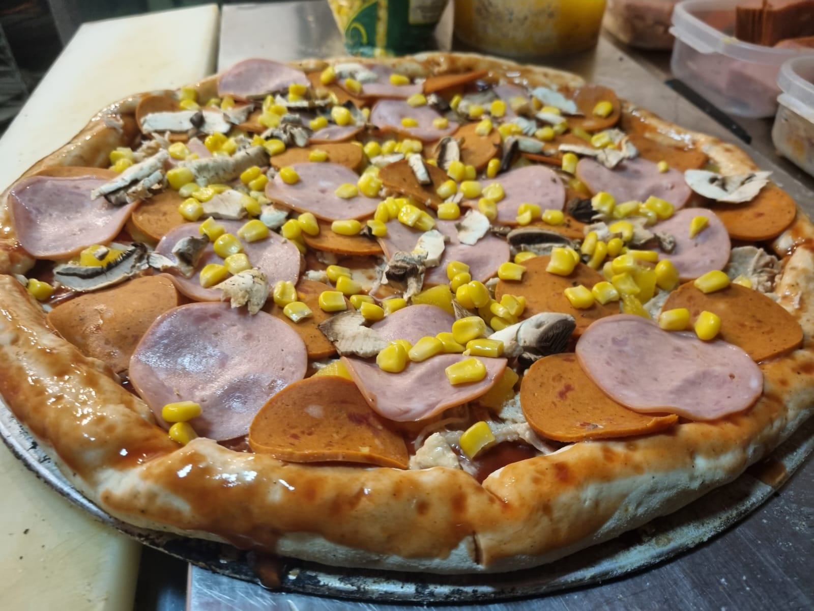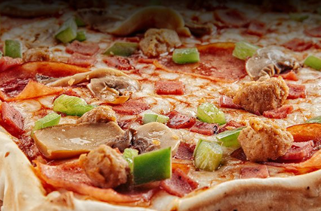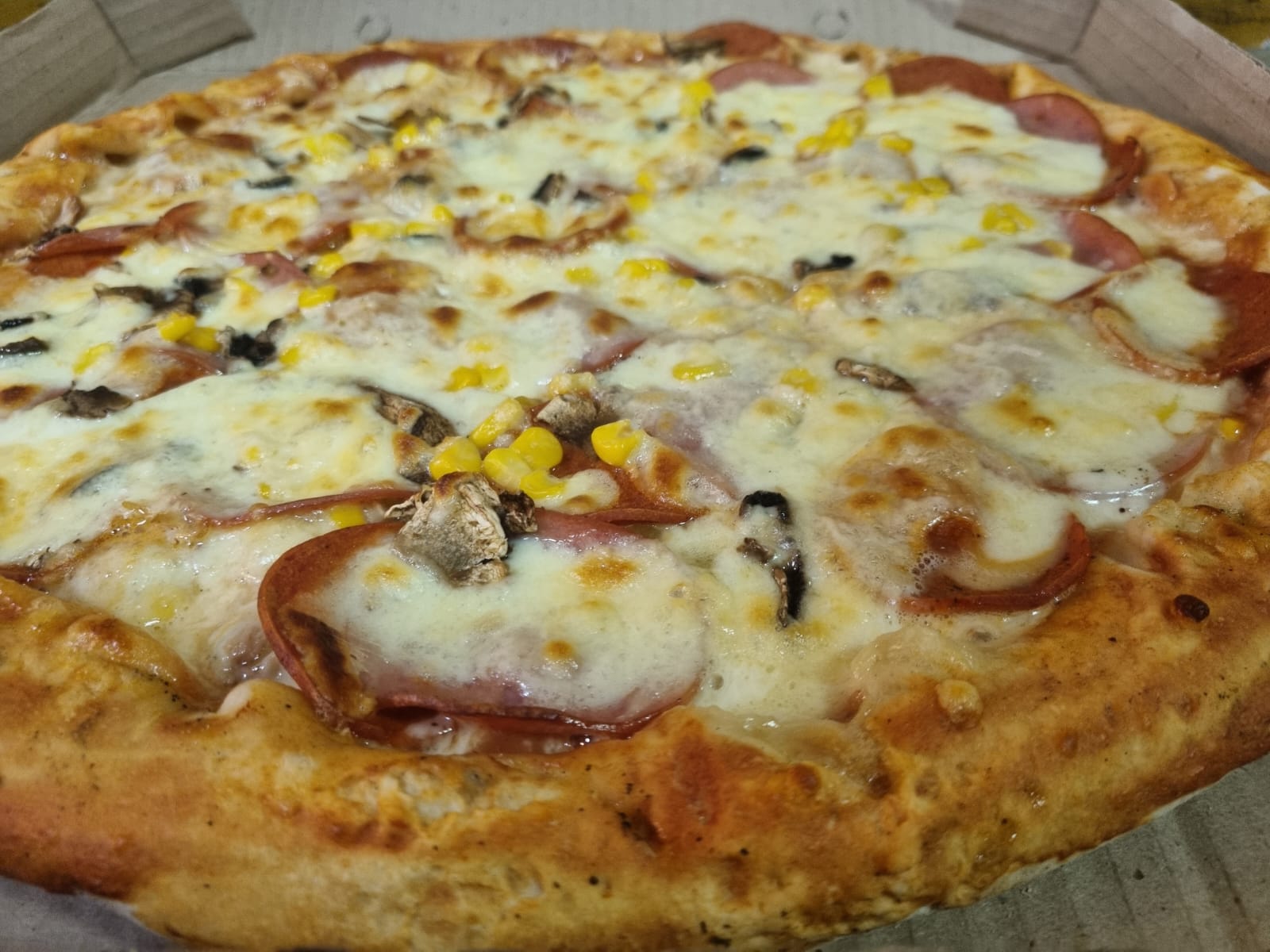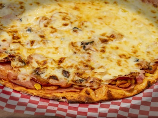 Extra queso, Jamón, Champiñones, Maíz, Tocineta