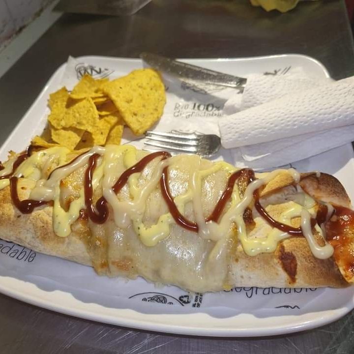 El calzone se prepara con masa suave, relleno de queso derretido, salsa de tomate y tus ingredientes favoritos. Se dobla y sella, luego se hornea hasta quedar dorado y crujiente por fuera, y jugoso por dentro. ¡Una delicia en cada bocado!