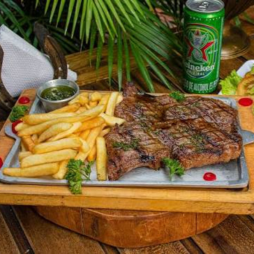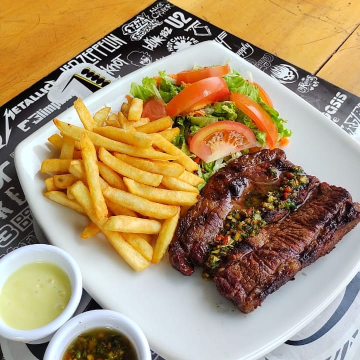 Churrasco 220 gr , papas fritas, ensalada dulce