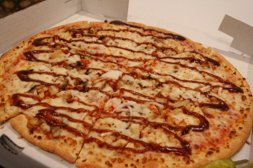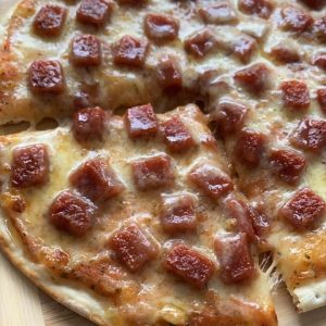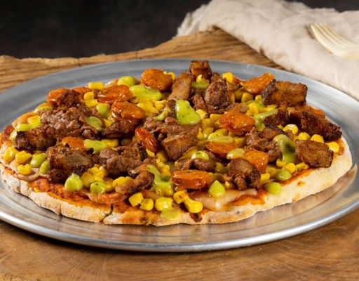 Pollo,Tocineta y Maíz Tierno y Dulce,Queso Parmesano,Queso Mozzarella, Salsa de Tomate.